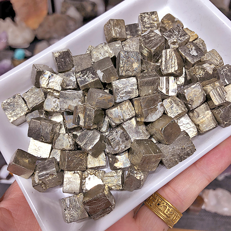 纯天然小方块黄铁矿原石宝石矿物实验材料奇石愚人金属光泽碎石